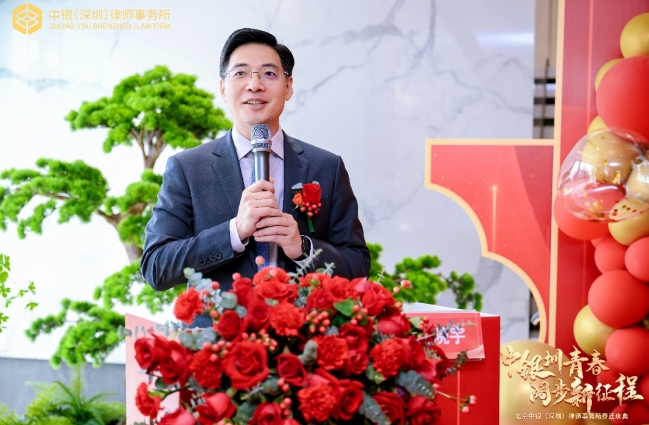 北京中银(深圳)律师事务所主任孙春桥开场致辞,对出席庆典的各位嘉宾表示了热烈欢迎和衷心感谢,重申了律所提供高质量法律服务、积极参与法治建设的决心和信念,展望了中银深圳的发展前景,表达了对未来的愿景和信心。